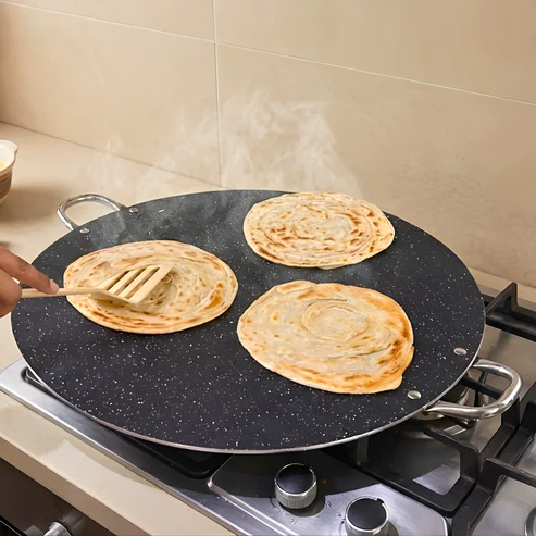 The Sonex Maga Tawa is engineered for large-scale, even-heat cooking—perfect for family meals, commercial kitchens, and outdoor cooking setups. Its wide surface allows effortless preparation of rotis, parathas, dosas, and grilled items with consistent heat distribution. Built with durable non-stick coating, it ensures easy cleanup and reliable performance for everyday use.
